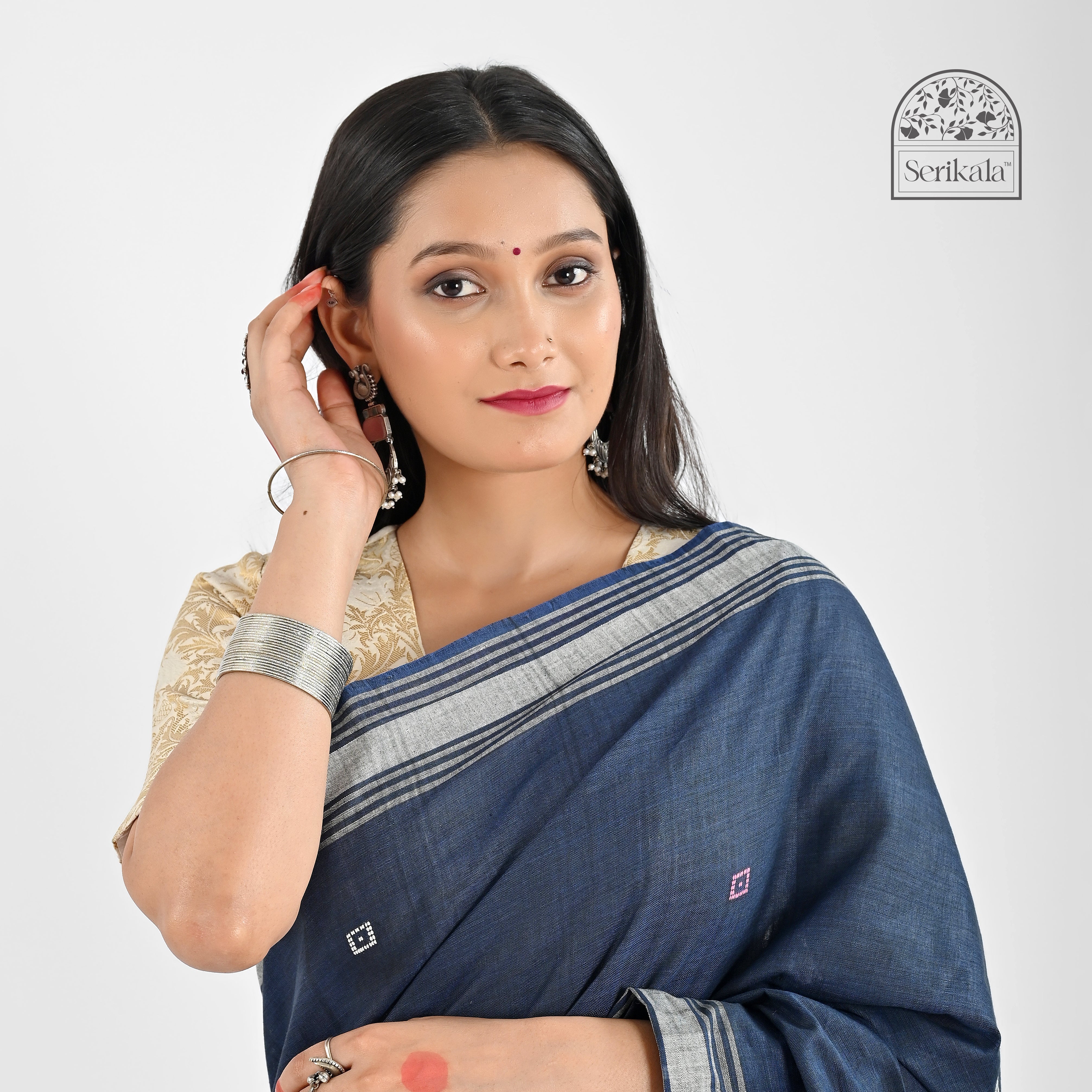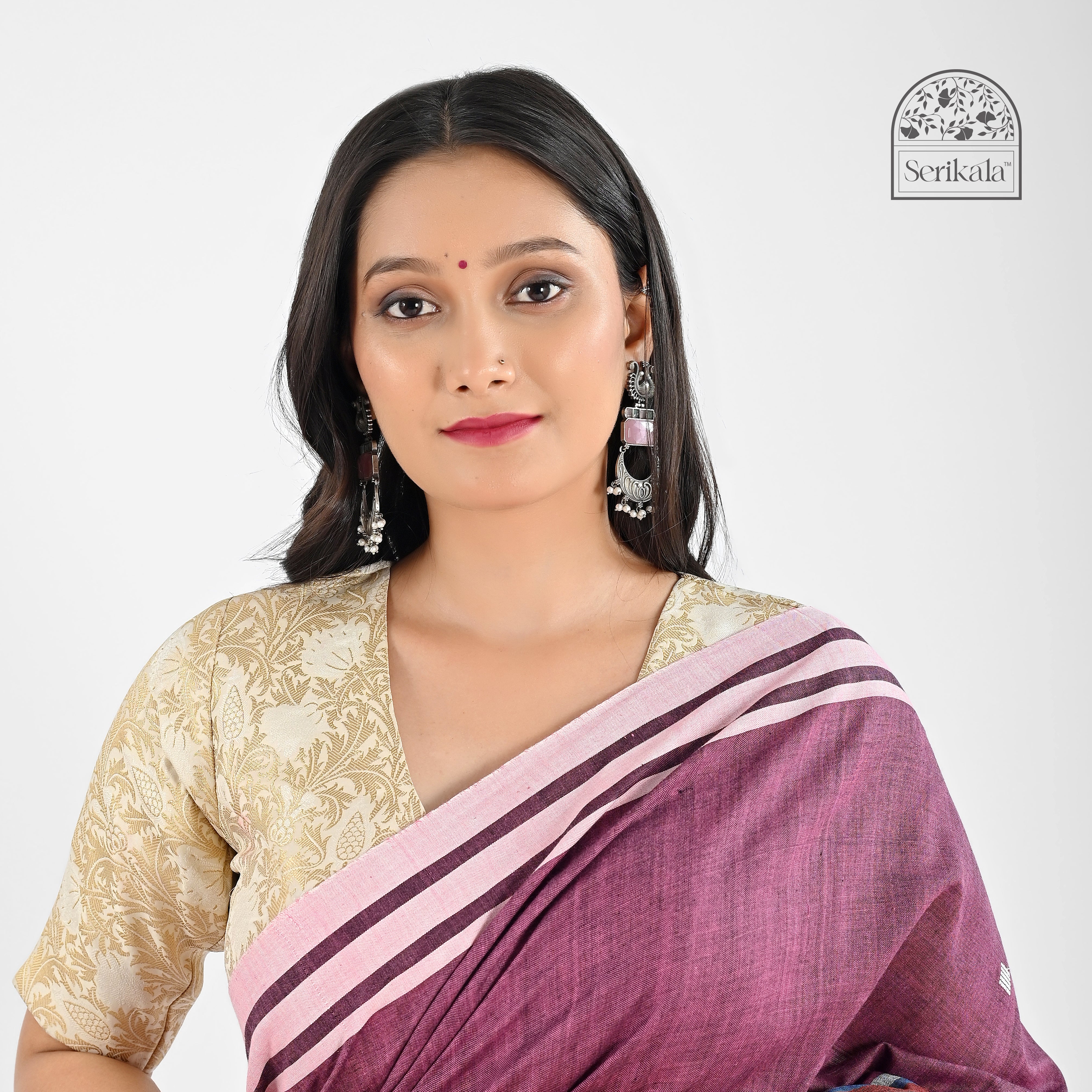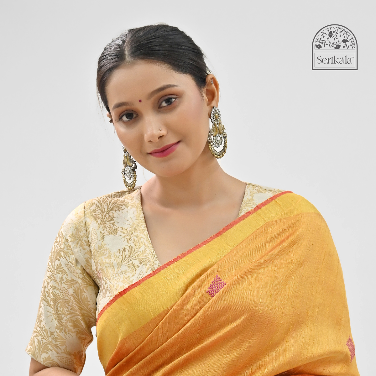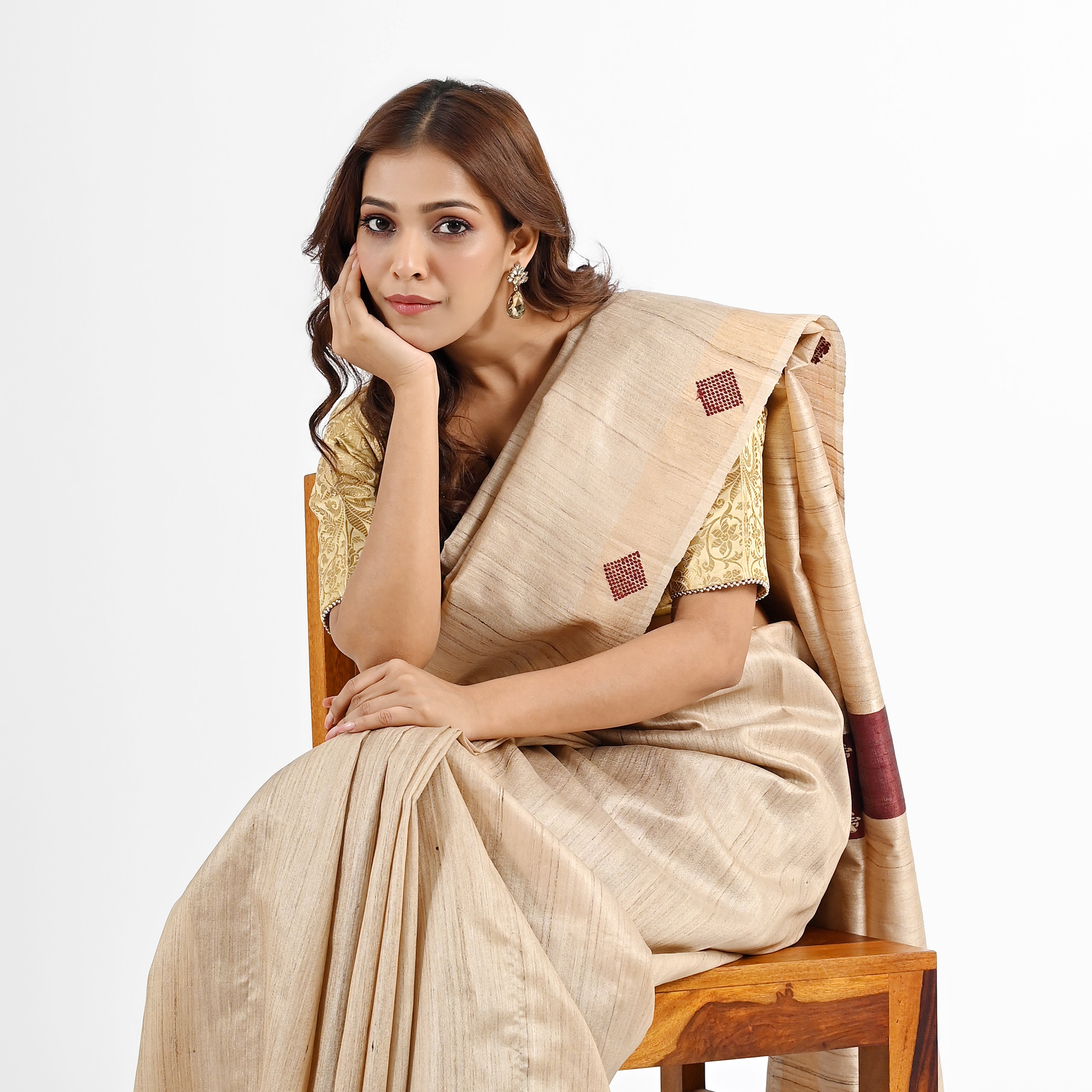 Peach Eri Silk Saree with Pink Tussar Pallu | Handloom Indian Saree - Serikala